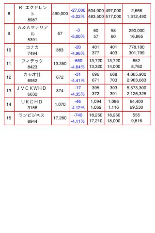 Tokyo Stock Exchange,Ranking,Markdown ratio,Updating every 30 minutes