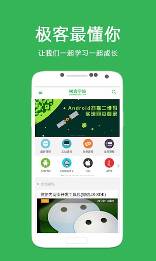 这是极客学院开发的一款能让你升职加薪,当上总经理,出任 CEO,迎娶白富美,走上人生巅峰的 App,是不是有点小激动呢~