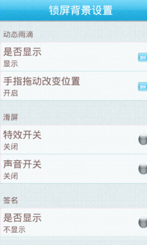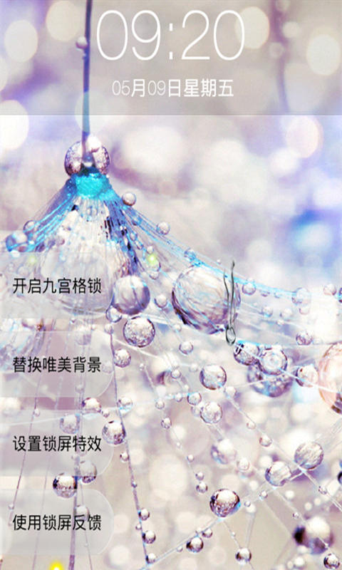 极美的色彩锁屏是一款九宫格锁屏,锁屏以九宫格的方式呈现,使用者事先设定一种解锁图案,解锁时只有按照设定好的图案滑动才能解锁,极美的色彩锁屏功能丰富到爆,有多张美图供你选择替换,可以根据个人喜好控制动画的开关,还可以设置个人独特签名,面对拥有如此强大功能的锁屏,你还在等什么,赶快下载下来使用吧!!!