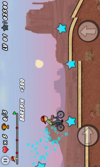极限单车男孩安卓版是一款竞速类的体育游戏,极限单车男孩安卓版中你需要骑着单车不停的前进,在前进的过程中你会遇到很多的障碍物,你需要的做的就是控制着你的单车成功的跨越这些障碍物。单车男孩追求是一种炫酷的技巧,在空中展现你的绚丽技巧,挑战极限,这就是单车男孩所想要的一切。游戏中包含了3种不同的地形,75个关卡,各种绚丽的技巧,让你体验单车的乐趣。
