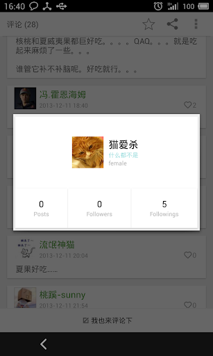 6. 支持QQ,微博,校内以及果壳账号的登陆。