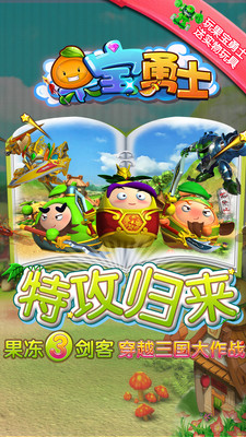 《果宝勇士》机甲归位,强势来袭!2014年度塔防手游良心巨作。关卡数目众多,战役停不下来,官渡赤壁长坂坡,经典挑战爽翻天!技能瞬发和超快游戏节奏完美融合,让你体验60秒极速过关的感觉!更有超过一百款机甲造型任你选择,收集养成共同打造最强果宝勇士,机甲变形和扭蛋培养两大玩法等你来战!果宝勇士,给你前所未有的畅爽塔防体验!