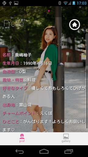 女性モデルのプロフィール写真と写真ギャラリーを閲覧できるアプリです。