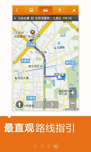3.线路引导:指向目的地的公交、驾车、步行多种线路规划,一键导航;