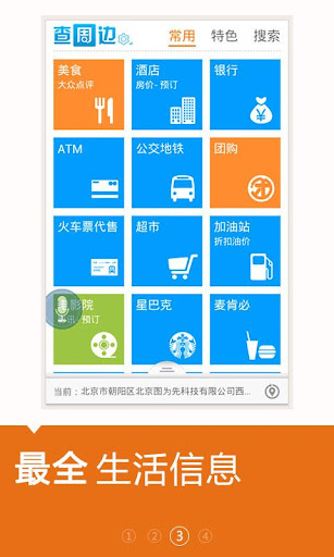查周边语音生活导航,不需打字,只需要说出“我要附近的银行、我要附近的XX”就能迅速搜索结果,还能提供最专业的路线指引。