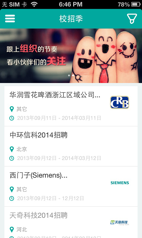 ※校招季,是一个有价值的移动应用,大街为毕业生们整合全站校招资源,第一时间将资讯呈现,陪伴你经历这个辛苦而充满活力的季节,走向成功!