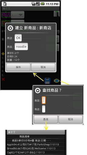 格價王是一套幫你從超市貨架上查找最低價貨品. 如:餅干(2磅,$28),(300克,$10),( 0.2千克,$8),(12安士,$12)...那一個便宜呢?...查價王馬上幫你找出. 可保存商品,商店,單價...,查價王也可直接上網,去搜索任何商品,價錢,,,,查價王也可當:單位轉換器.-----中文版(繁)=(標題/提示文字=中文繁體字, 但是繁,簡,英文,法文,德文...都可用,可輸入,可保存任何語言文字.只有很少的幾個繁體字提示)ANDROID 手機是用UTF8多語言的: 繁簡共存的---可以在繁體字介面中,讀取,輸入簡體字;在簡體字介面中,讀取,輸入繁體字;). 店名,商品名,越短越好.