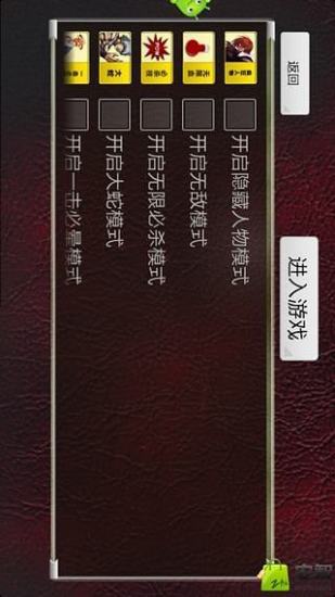 将街机的对战模式在手机上通过蓝牙得以实现,提供所有游戏角色的个人资料和出招表供玩家查阅,使用虚拟摇杆操作,可与好友尽情享受PK的乐趣!如果玩的不够爽快,还请反馈给我,邮箱:kof97_fans@163.com,会非常重视您的反馈意见,并不断改进.玩的高兴的后,请给小弟一点鼓励,下载几个免费广告支持一下我的生活费,做更深入的破解是我的梦想,梦想的实现需要您的鼓励.谢谢!游戏特色:1,可使用蓝牙进行对战;2,可以设置无敌模式,无限必杀模式,一击必晕模式和特效打击模式等多种游戏模式.3,使用虚拟摇杆操作,可与好友尽情享受PK的乐趣.