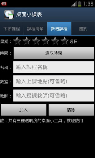 「桌面小課表」這款App是一個課表小工具,可以將使用者輸入的課程資訊儲存於資料庫當中