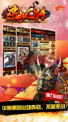 《梁山Q传》集齐天然萌呆小清新,酷炫狂拽高端范儿,是以美女好汉为主诉的卡牌社交类对战游戏。侠肝义胆震云天,美女柔情舞蹁跹。耳熟能详的水浒故事,在这里迎来反传统的新戏说时代。卡牌是帅哥与美女标配,江湖是友情与爱情双丰收!我们把前人走过的路走出了新梁山style,笑看历史,在游戏中怀旧与创造;勇闯江湖,在角色中淬炼与升华。游戏界面以水墨风卷轴动画为铺陈,更有独创的多轮式PK战斗场面酷炫精彩。轮盘运转指向未知的命运,带来强烈震撼视听盛宴。让您在时空中畅怀游走,欢迎来江湖里自由徜徉。