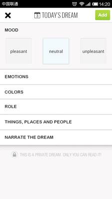 一款帮助你记录并分析梦境的应用,如果你经常做梦,并且想知道你的梦境代表了什么,也许你可以尝试一下这款应用(不过需要注意的目前只有英文版本)。应用的界面很漂亮,注册之后,输入梦的颜色、心情、人物等内容,积累的梦境多了应用就会自动帮你分析你的梦境了,是不是很神奇呢?