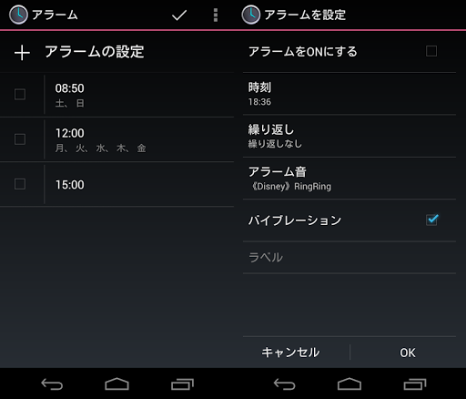 デフォルトで端末に搭載されているアラーム機能となりますので、