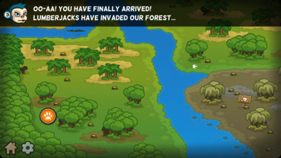 《森林防御战:猴子传奇(Lumberwhack: Defend the Wild)》是一款有创意的策略塔防游戏,游戏不单有益智的作用,还积极传达保护环境的意识。在游戏中,玩家将要控制一只机灵的猴子,带领它的“小伙伴们”完成一场场家园保卫战,虽然是简单的对推式塔防,不过在玩法机制上和同类作品还是有些不一样的地方。