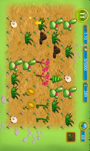 ◆你需要将随机产生的植物轻触屏幕放到场景中,当相同植物达到三个或者三个以上连在一起的时候,就会变身升级为另一种植物,并且得到积分,当达到一定积分时,就可以通关啦!