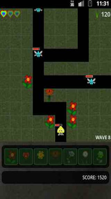植物大战小昆虫,策略塔防游戏,每种植物都是有毒的,且毒性有一定的攻击范围,根据不同的地形种不同的植物以消灭来犯的小昆虫!且不同植物价钱不一样,价越高攻击力越强。消灭每一个不同等级的昆虫可获得不同的金币!一共有四大关,每大关有多个小关!