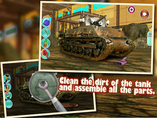 捲起你的袖子,並採取了機械工具盒修復了凹陷,破碎,凌亂和未修復的坦克,在修理車間。調補坦克發動機,其修零件,放機油,電池充電,與汽油填滿它,掃描它重新連接電線,緊油箱的螺帽和螺絲螺栓,把水倒入水箱,並在年底洗它,使之看起來既乾淨又可行,成為超級坦克模擬器。
