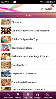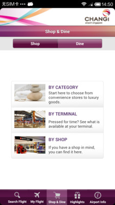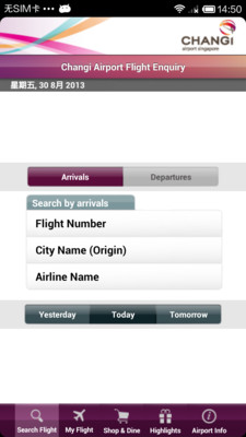 新加坡樟宜机场客户端,这里有你需要的一切信息,实时更新飞行时间,登机口,以及购物和餐饮信息。