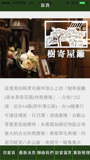 座落南投縣草屯鎮坪頂山上的「樹寄屋籬(原本草奇花園)休閒農場」,占地7.2公頃,近台14線(即中潭公路),台14線東行可通往埔里、日月潭、清境農場、合歡山等重要旅遊勝地,本農場為鄰近地區占地最大的合法休閒農場。東鄰草屯南埔、向西可眺望八卦山脈、南側可一睹集集大山,天氣晴朗可一覽奇萊山主峰。