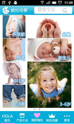 2. 七大分类一应俱全:从怀孕到分娩,从月子、哺乳到早教、育儿所需的各种商品。