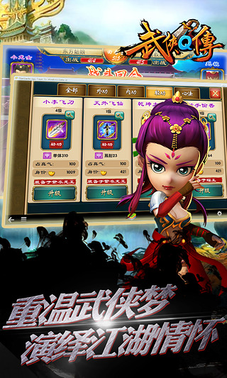 《武侠Q传》是一款拥有超精美3D画面的武侠RPG兼策略类游戏。游戏中你将扮演一位少年英雄,阅历不深却肩负一派掌门之重任,奉先师遗命下山,带领金庸、古龙、梁羽生经典武侠小说中众多耳熟能详的英雄豪杰一同闯荡江湖,寻访已绝迹江湖,冷酷美艳且武功奇高的魔教教主。