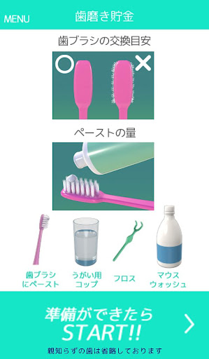 「貯金」というのは、忙しくて歯磨きを怠ってしまいがちなお子さんが、毎日自分から歯磨きをするように、毎回の歯磨きでバーチャル貯金が貯まる仕組みのことです。一定期間続けられたら、最初に設定した実際のお小遣いやごほうびが両親からもらえる仕組みで、継続へのモチベーションを保てるようになっています(貯金は設定せずに単に歯磨きツールとしても使えます)。