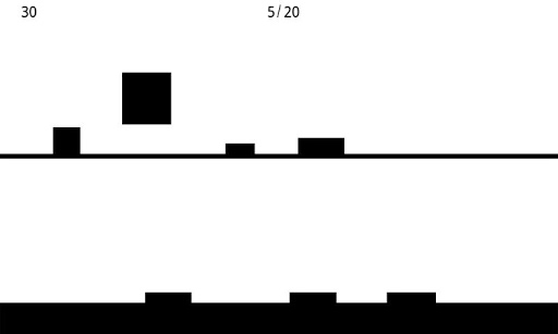 游戏界面简洁明了。自控力差的请绕道,一旦上瘾后果很严重!玩家控制小方块在适当的时间跳起躲避障碍物,每关小方块跳起的高度和速度都不相同,障碍物大小高矮也不一样。各种机关,各种陷阱,死了都要虐