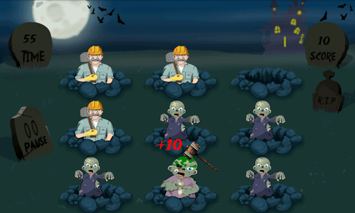 在殭屍爆炸的殭屍水龍頭錘得分更多。在這個遊戲中是迅速,因為更快的你一聲殭屍你的分數就越大。不要猛烈撞擊對人的錘子,你將失去的時間。