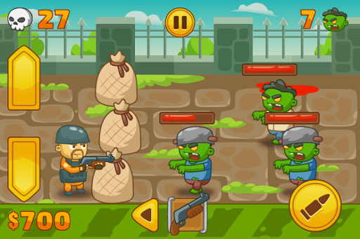 免費殭屍遊戲,在這裡你唯一的目標是不要讓殭屍讓你的基地,你被一些沙袋保護,但要注意,速度非常快,你必須拍攝殭屍接近每年秋季ganaras一些錢,然後可以對新武器交換,管理殭屍的威脅和先進水平的每天生存。