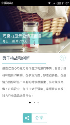 给你每日最新鲜的测试题目,超准确的分析结果让你爱不释手,还能与好友同步参与测试问答的乐趣。每日一测,每天一个小测试,每天进步一点点。让你了解自己、更了解你的伴侣,连闺蜜基友都可以了解于心,你还等什么?