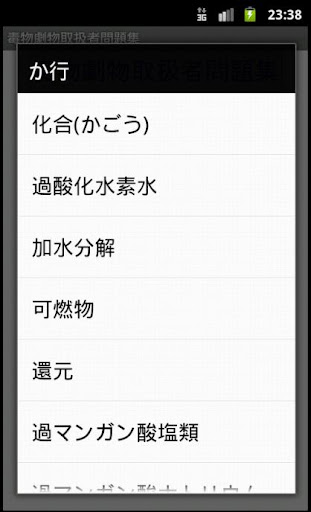 毒劇物に関する用語集を搭載しているため、トップページからの検索、問題を解いてる最中にも確認ができます。