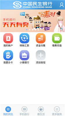 民生小微手机银行是根据小微客户的结算特点专门打造的移动金融服务平台,丰富实用的金融服务、时尚动感的界面设计、个性易用的功能布局、全新流畅的用户体验,助您轻松享用精彩的移动金融和移动生活服务。创新推出“我的民生”、“手机银行”、“惠生活”等金融服务专区,除提供丰富的个人移动金融服务外,还独创了小微银行、公私账户集中管理、企业账户、对公转账、代发工资、企业财务室、乐收银管理、回单验证、大额汇款、二维码收付、贷款服务等小微手机银行特色功能,满足小微客户多元的支付结算需求,方便小微客户快捷管理公私账户,提高支付结算效率,降低经营成本。