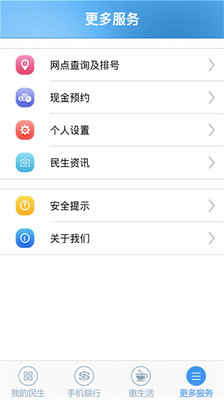更多服务:民生客服、客户之声、安全提示、去app评价等更多服务,方便您及时查询了解各类信息,随时反馈意见建议。