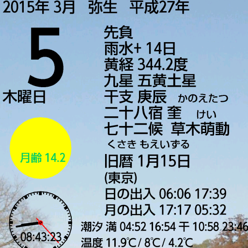 ・日付 曜日 旧暦 干支 六曜 月齢を表示します。