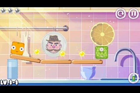 1.点击水果变形,水果运动后撞击虫子,同时可以吃到星星