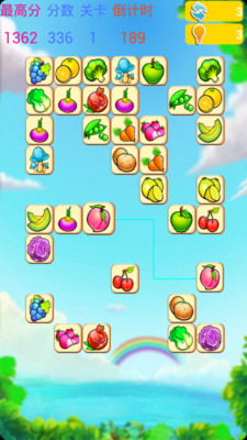 水果蔬菜连连看一款最经典的休闲益智娱乐游戏,经久不衰!以健康又清新的蔬菜形象和大家見面具有经典模式、闯关模式两种不同的游戏方式,各种各样又好看的水果蔬菜,两个相同的图标连在一起可以消除,在规定的时间内把图标全部消除即可获胜;每局免费提供重新排列、帮助道具各3个。规则简单容易上手,趣味性和挑战性不减!游戏速度节奏轻快,画面清新悦目,多样式的风格是休闲消磨时光的利器。