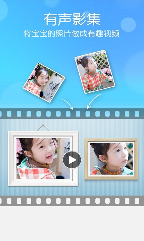 水滴宝宝,一家人的亲子相册。记录点滴成长故事,永久保存精彩瞬间;爸爸妈妈一起记录、所有家人实时共享;便捷制作“有声影集”,照片立变宝宝MV;海量云存储空间,安全私密永不丢失。
