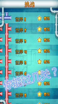 - 街机模式:在水溢出来前调整足够多的水管(包含有奖励和惩罚)。