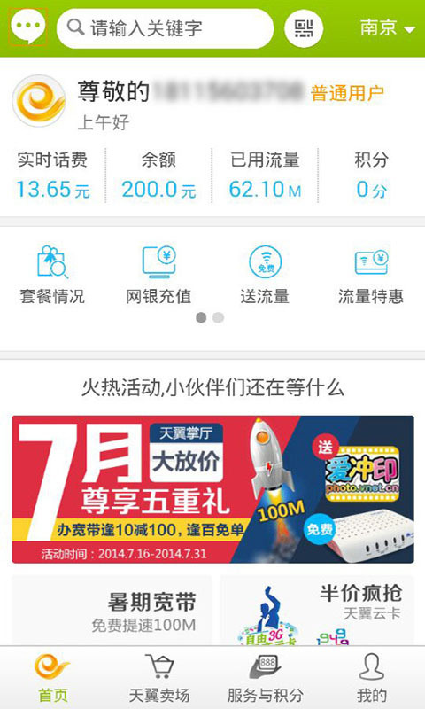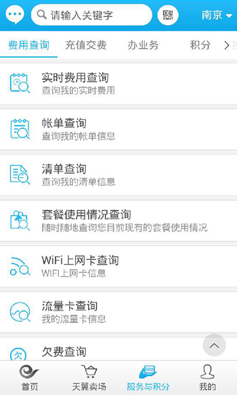 1、基本功能:话费查询、流量查询、资费查询、交费充值、积分查询兑换、业务办理及更换等。