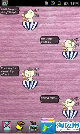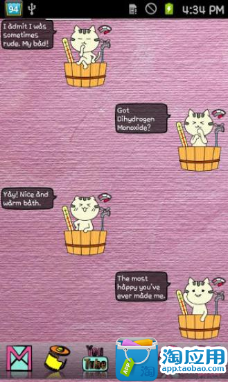 沐浴中的小猫电池插件是一款超可爱的桌面电池应用,可以和小猫互动,会和你聊天,也可以喂它喝牛奶,小猫的样子,澡盆有多重样式供选择。