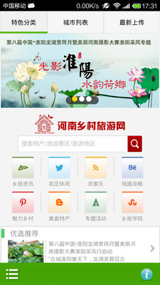 主要展示河南旅游里面的乡村旅游内容,主要包括,农家乐,魅力乡村和休闲农庄。