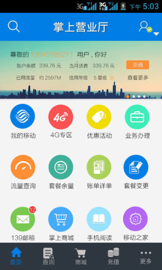 河南移动掌上营业厅系河南移动官方出品。用户下载安装后,即可随时随地查话费、流量、套餐余量、已开业务、帐详单等;还可以在线变更套餐、办理各类业务;及时了解4G资讯和最新优惠信息……是24小时提供随身服务的手机营业厅;足不出户享受全方位自助服务---一切尽在掌握!