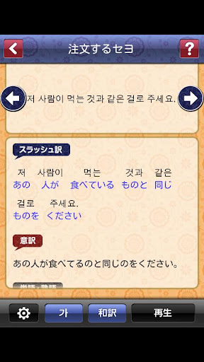 ③ 各文章に、日本語訳や単語・文法の説明だけでなく、韓国語の真下に日本語の直訳(スラッシュ訳)を載せることで、どの単語がどんな意味なのかが視覚的に分かりやすくなる、効率良くラクに勉強できる学習アプリを実現しました!