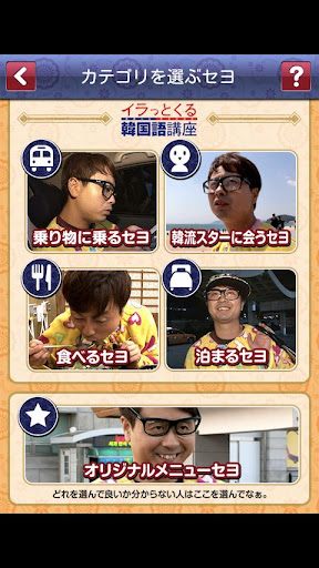 テレビ東京「イラっとくる韓国語講座」から学習アプリが誕生!すでに大好評をいただいている「河本準一式韓国語の教科書」に続き今度は「会話習得」の決定版です!河本くんも企画・構想段階から全面参加!!韓国語を勉強したいけど、参考書の勉強が大変ですぐに挫折してしまう。せっかく参考書のセリフを覚えたのに、現実で使えるようなセリフではない。みなさんのこれまでのそんな経験や意見に鮮やかにお応えしたアプリです。
