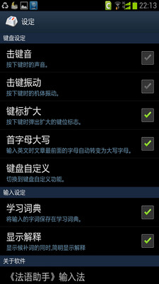 《法语助手》法语智能输入法,为法语学习者、留学生以及翻译工作者提供了一条方便简洁的法语输入途径,让您从此不必再为法语的输入烦恼。