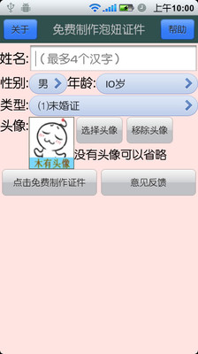 泡妞通行证是一款帮您制作泡妞证的软件,目前可以制作的证有:未婚证,发春证,寻找异性证,网恋许可证,痴情证,失恋证,征婚证。