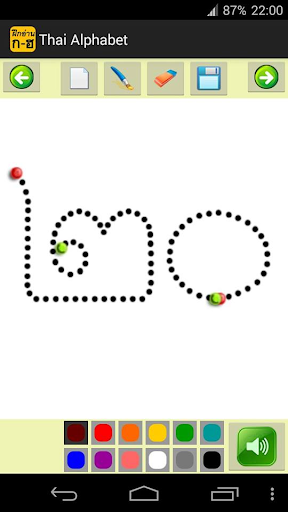 在写一个笔画的应用程序,根据补丁辅音泰国的做法。 44个字符从。鸡猫头鹰拖动它从绿色拖到红点。 A线由另一元音32补丁,并制定一些1-20线绘制。