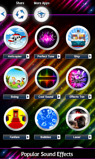 Android的流行聲音效果的應用程序,是卓越品質頂級音效的最佳集合。音效鈴聲是理想的消費質量時間與您的朋友和家人。你可以玩得開心,玩音效遊戲的朋友,他們可以嘗試去猜測令人難以置信的有趣的聲音效果,如機器人,氣喇叭,船,激光,直升機,射擊效果,手機時鐘,警報器或吉他的效果。如果你喜歡捉弄,流行的音效音板是非常適合你和你的Android設備或tablet.You不需要看多了,這個最新的免費音效的應用程序是為你完美的解決方案。你不會找到更好的,這些是最流行的和最好的聲音效果聽起來永遠。免費下載流行的聲音效果的應用程序,你會發現驚人的聲音效果音板與最熱的音效鈴聲和聲音效果的音樂。使用這個很酷的應用程序來設置新的音效短信,頂級音效通知或流行的音效報警。