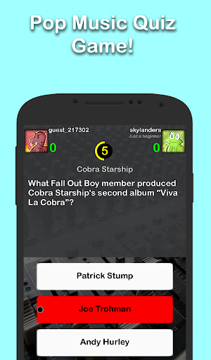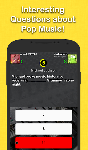 這種知識問答游戲中包含395問題約流行音樂。 它的自由發揮,非常有趣。 你可能不太了解流行音樂。 這是好的。 你可以使用pop音樂問答游戲,有助於教育你了解歌曲。