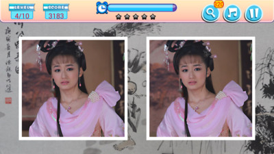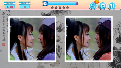 仔细比较左右两边的图片,发现不一样就点下去,每张图有5处不一样的地方。