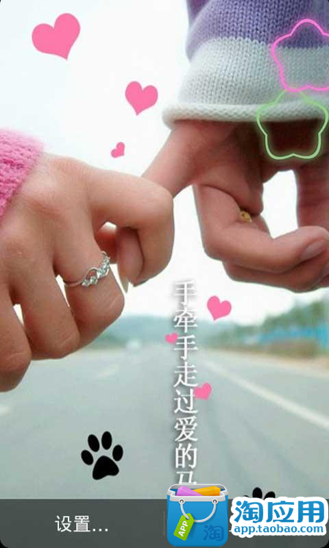 这是一款以浪漫爱情为主题的壁纸,集合了十张精美壁纸,通过个性化的动态设置,使您的手机桌面与电脑桌面一样看起来更加独特,美观实时装扮你的桌面~!